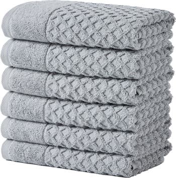Upgrade your bathroom essentials with this set of luxuriously soft hand towels that are crafted from absorbent cotton and feature a darling diamond texture.