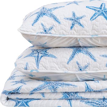 Wavy stitching brings cozy comfort to this wrinkle-resistant quilt set with a starfish design.