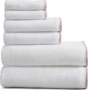[This review was collected as part of a promotion.] I received a 6 pack hand towel set. I thought I was going to receive a 6 piece set that included a mix of towels including bath towels. The hand towels are simple and elegant. The stitched boarder is a nice touch. They are absorbent and soft.