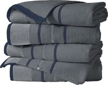 Decorative stripes make a visual statement against this convenient pack of bath towels made from absorbent low-twist cotton that's quick to dry and exceptionally soft.