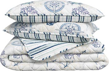 Transform your bedroom into a coastal retreat with this reversible, printed quilt set made from soft microfiber with lightweight down-alternative fill.