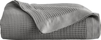 Cozy up on the couch with this soft cotton throw blanket that features a waffle weave texture perfect for all-season use.