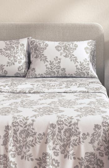 Slip into dreamland quickly after sinking into bed on this flannel sheet set crafted from Turkish cotton and adorned with a winter floral-inspired print.