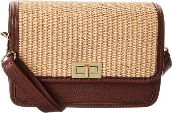 Gleaming hardware and an adjustable strap outfit this crossbody bag shaped from woven raffia and tumbled leather, designed to keep your essentials perfectly organized in this luxe day-to-night style.