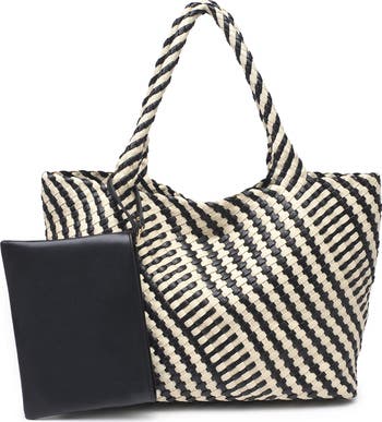 This woven tote bag offers a relaxed, textured look with plenty of carry space and includes a coordinating zip pouch to keep smaller essentials organized.