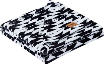 Cozy up on a cold day with this plush throw blanket that is covered in a Western-inspired geometric pattern.