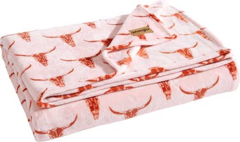 Cozy up on the couch with this plush throw blanket covered in a western-inspired steer head pattern.