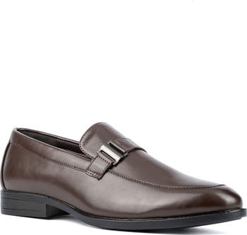 Add sophistication to your work-ready ensemble with a faux-leather loafer topped with a single buckle.