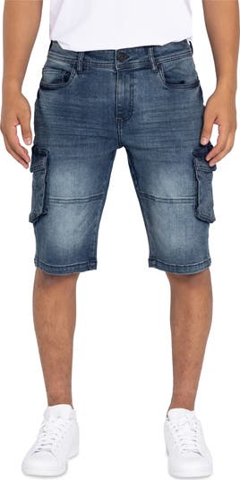 Roomy flap pockets offer plenty of room for your essentials in these denim cargo shorts sporting faded detailing.