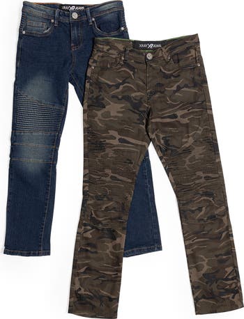 Set them up with stylish basics with this pack of two stretch denim jeans that feature moto styling.