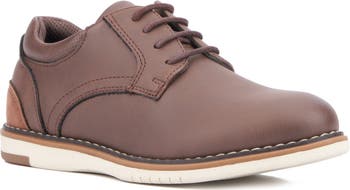 A flexible rubber grip sole puts kid-approved comfort and traction under a polished derby secured with laces for a custom comfort fit.