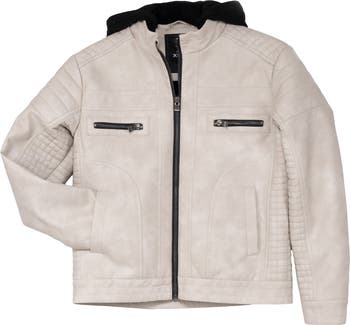 Bring a bit of edge to your kiddo's cold-weather ensembles with this moto-inspired jacket finished with jersey hood.