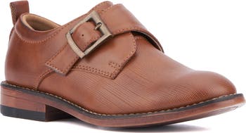 A rubber grip sole puts kid-approved comfort and traction under a polished loafer secured with an adjustable buckled strap.