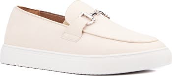Hidden elastic insets and a sporty white sole ensures lasting comfort in a classically styled bit loafer.