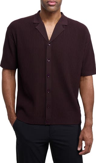A trendy camp shirt fashioned from ribbed knit is a perfect way to update your look with a preppy flourish.