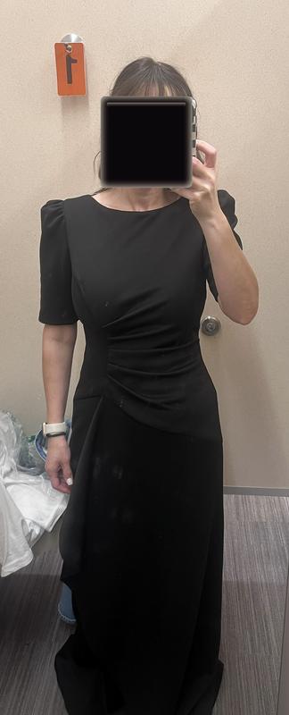I liked the style in the photo online, but it just didn’t suit me and my body. The poof at the top of the shoulder was awkward too. The material of the dress was very nice though.