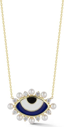 Add contemporary flair to your accessory collection with this freshwater pearl embellished evil eye pendant necklace.
