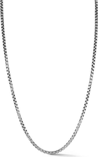 Oxidization gives a high-contrast appearance to a sterling silver necklace crafted in Italy from slim box chain with rounded edges for an understated update to the classic design.