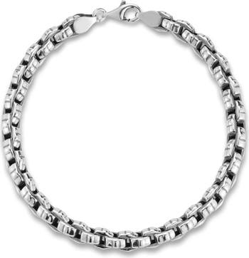 Rounded edges give an understated update to the thick box chain of a polished bracelet made from sterling silver with an icy rhodium-plated finish to instantly brighten your wrist stack.