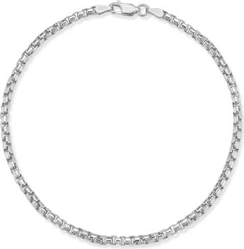 Rounded edges give an understated update to the slim box chain of an Italian-crafted bracelet made from sterling silver with an icy rhodium-plated finish to instantly brighten your wrist stack.