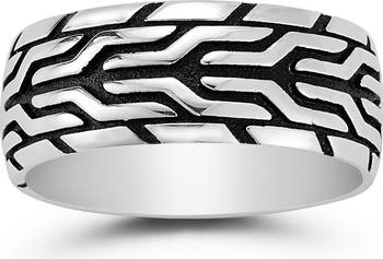 Add a street-savvy edge your style with a filigree-detailed band ring, crafted from sterling silver for lasting luster.