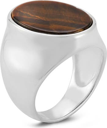 Bold and glossy tiger's eye elevates a classic signet ring that will be worn on endless repeat.