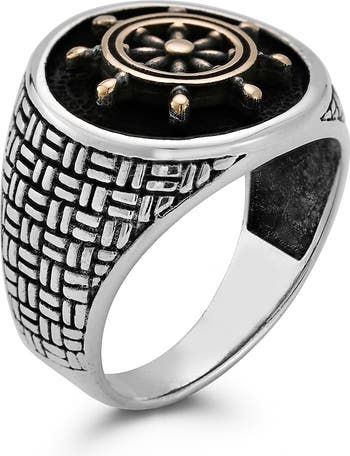 Add a street-savvy edge your style with an ship's wheel-detailed ring, crafted from sterling silver for lasting luster.