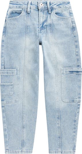 Barrel legs add a trendy finishing touch to these casual jeans framed by roomy cargo pockets so your kiddo can stay hands-free from day to night.