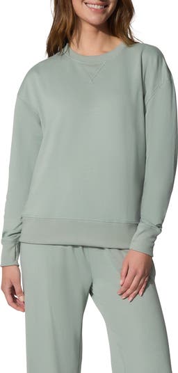 - Sweatshirt has crewneck; long sleeves with thumbhole cuffs