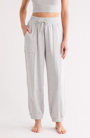 Work out or wind down in these drawstring joggers cut in a high rise from washed terry.