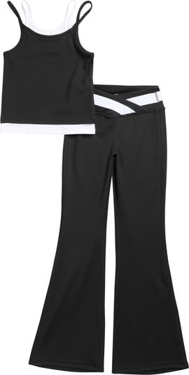 They can have that perfectly layered look with this soft, stretchy set that pairs a double-strap tank with flared-leg pants.