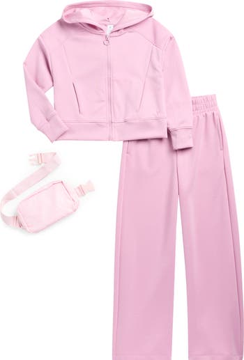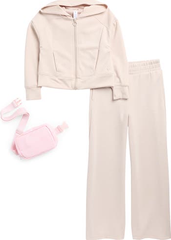 Give your kid casual-cool style with this zip hoodie and wide-leg pants set that includes a coordinating mini belt bag.
