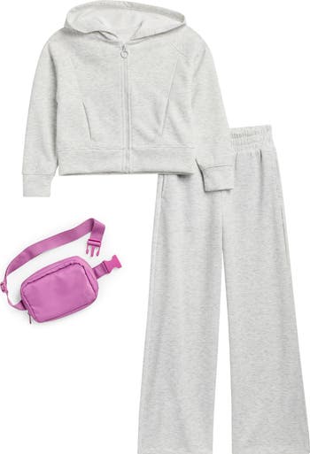 Give your kid casual-cool style with this zip hoodie and wide-leg pants set that includes a coordinating mini belt bag.