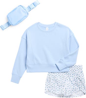 Give your kid casual-cool style with this soft sweatshirt and running shorts set that includes a coordinating mini belt bag.