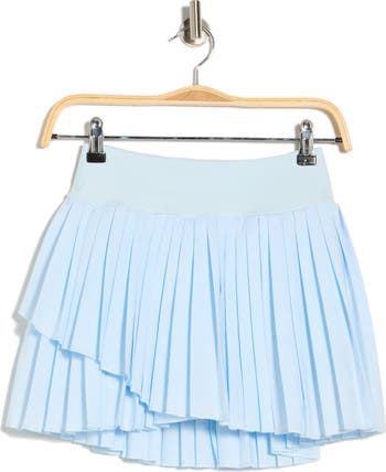Style is the name of the game on and off the court with this asymmetrically layered tennis skirt textured with ultrasharp pleats.