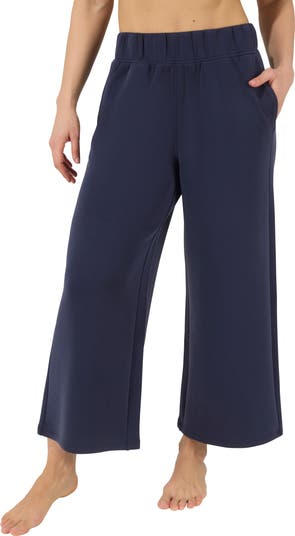 Perfect for yoga days, lounging or everyday errands, these comfortable pants are fashioned in a wide-leg silhouette with handy pockets.