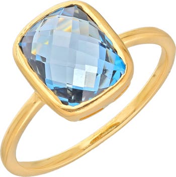 A bezel-set London blue topaz adds vibrant sparkle to a ring plated in gleaming 10-karat gold.