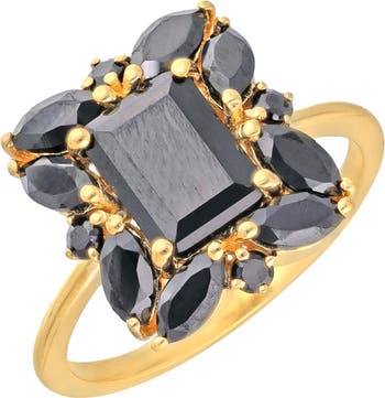 An assortment of onyx gemstones adds a romantic frame to an onyx cocktail ring finished in goldtone plating for a lasting luster.