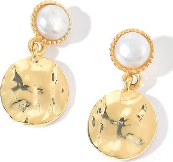 Hammered discs suspend from lustrous freshwater pearl studs in these earrings perfect for your daytime or evening ensembles.