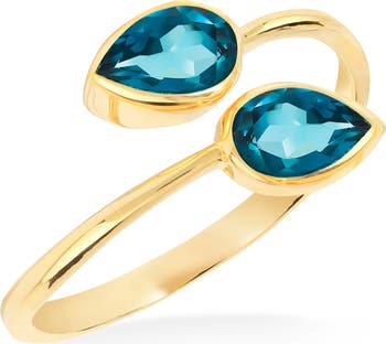 Twin marquise-cut gemstones sparkle on this wrap-style sterling silver ring dipped in a gleaming finish.