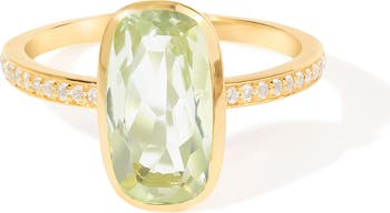 A lab-grown gemstone dazzles in a cushion cut adding refined shine to this gleaming ring.