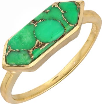 Bezel-set green copper turquoise adds an ethereal element to a simple statement ring crafted from polished goldtone plate finish for a lasting luster.
