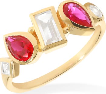 Mixed-cut lab-created rubies and gemstones sparkle on this sterling silver ring dipped in a gleaming finish.