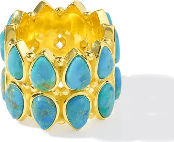 Two layers of pear-shaped turquoise stones form a bold brass ring that gives your look a cool boho vibe.