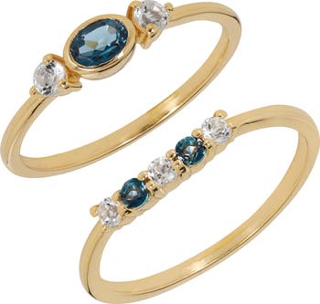 London blue topaz and white topaz add vibrant sparkle to a ring plated in a warm goldtone.