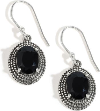 Smooth polished onyx stones shimmer in a rope frame of wire-hung drop earrings finessed from fine sterling silver. This artfully designed style is dainty and demure enough for everyday wear.