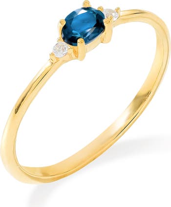 A mix of faceted lab-created gemstones in two hues forms a prong-set oval accented by two round stones for a statement-making ring to add to your daily stack.