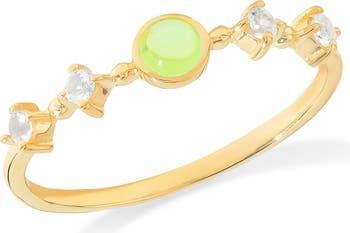 A mix of lab-created gemstones in two hues forms a bezel-set round accented by four faceted stones for a statement-making ring to add to your daily stack.