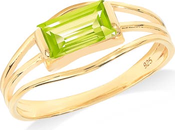 An emerald-cut semiprecious stone enriches this elegant split-shank ring crafted from sterling silver with a warm goldtone finish.