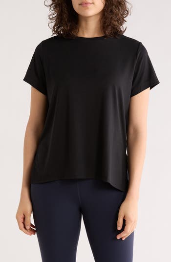 Go from yoga stretching to HIIT sessions in this activewear T-shirt cut from soft jersey fabric in a loose silhouette with a high-low hem.